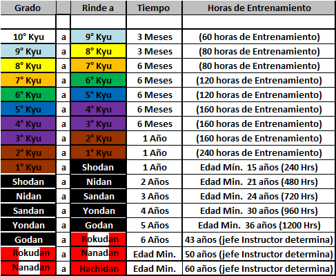En el caso de los exámenes de Cintas Negras deberán cumplir con el tiempo de practica, edad mínima establecida , examen Teórico , Examen práctico (Kata - Bunkai - Kumite) , Examen Físico Técnico y fundamentalmente que cumplan con sus estudios de educación Secundaria básica.